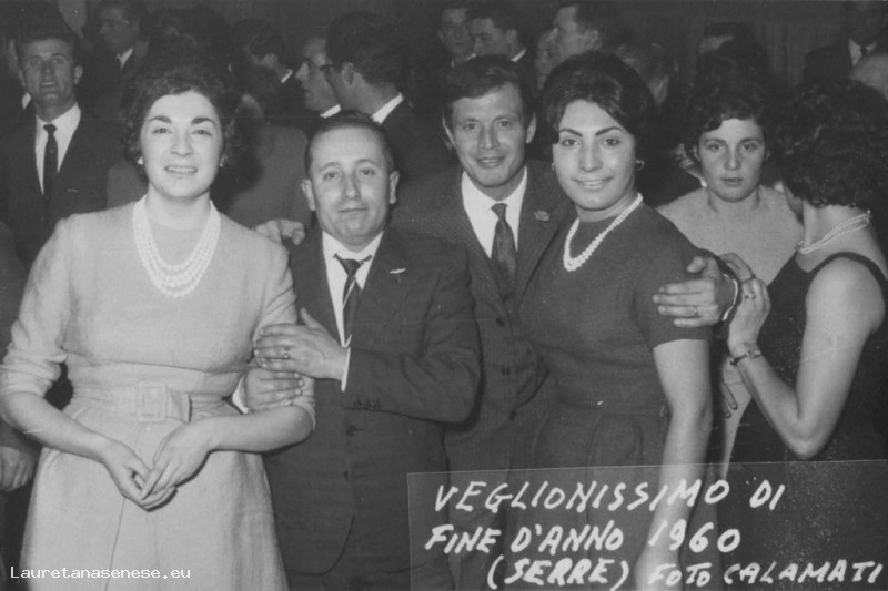 A quel tempo, oltre al Teatro Ravvivati, gli ascianesi frequentavano anche il nuovo Teatro Verdi di Serre. In questa foto ci sono solo ascianesi? Chi sono? Da sinistra: