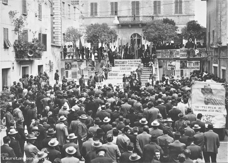 Tutti i cortei del 1° Maggio si concludevano con un comizio generalmente fatto nella piazza principale del paese: Piazza Garibaldi.