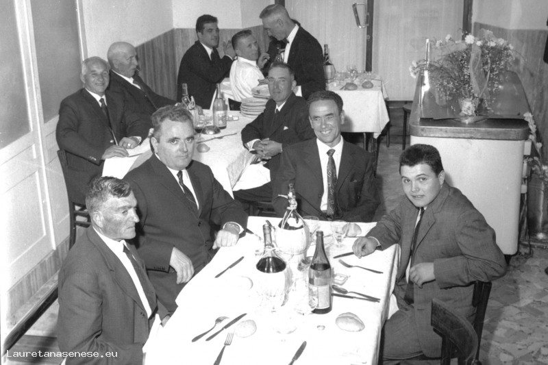- In piedi in livrea bianca e fiocchino, Attilio Amidei che serve le pietanze.