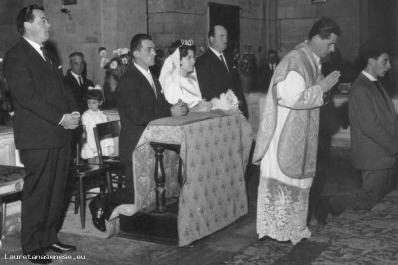 Celebrante: Don Domenico Sandroni, chierichetto Gianfranco Sonnimini, testimoni: Crispino Generalie il Viti babbo di Franca