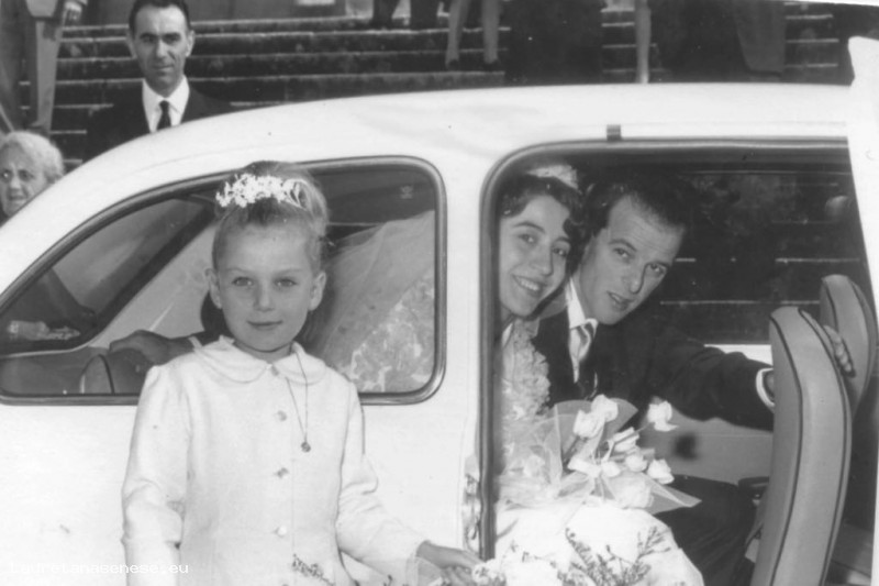 Ad attenderli in fondo alla scalinata della chiesa un'utilitaria con motore posteriore, FIAT 850, tirata a lucido per l'occasione.