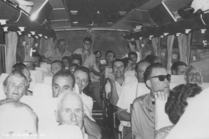 La foto scattata su un pullman pieno di ascianesi, ci fa pensare ad una delle tante gite a corto raggio che allora si facevano. In alternativa, potrebbe trattarsi di una trasferta della squadra di calcio locale o della Banda cittadina.