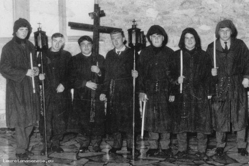 1965? - Volontari della Misericordia pronti per la processione Asciano