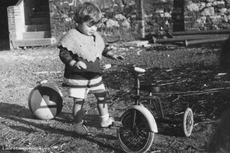 Sandro Moscadelli, gemello di Nella, gioca nel giardino di casa.