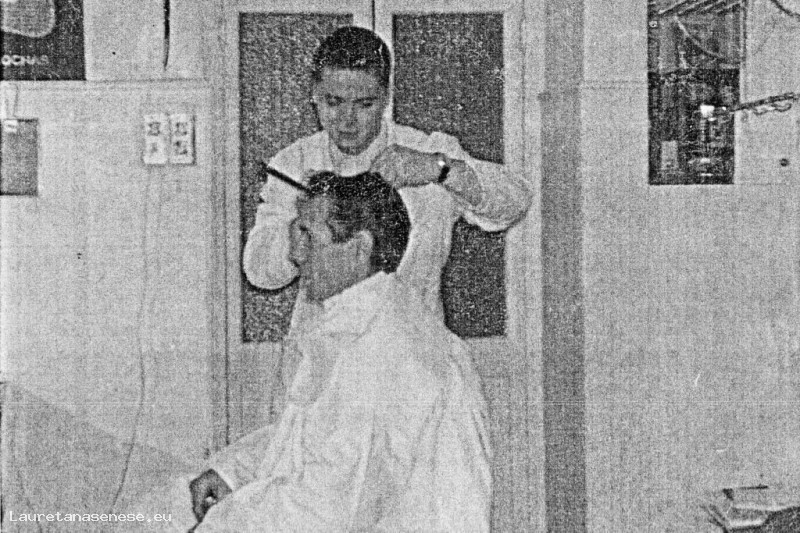Nella foto, Nedo sta facendo i capelli a un ascianese, che per la somiglianza potrebbe essere Eugenio Torpigliani.