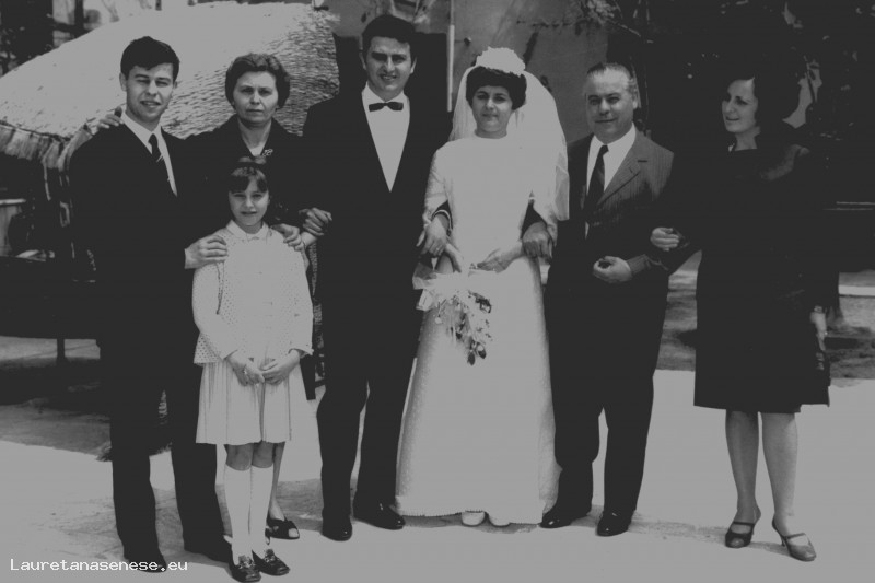 Classica foto ricordo effettuata a rotazione con i parenti presenti al matrimonio. Si riconoscono da sinistra in alto: