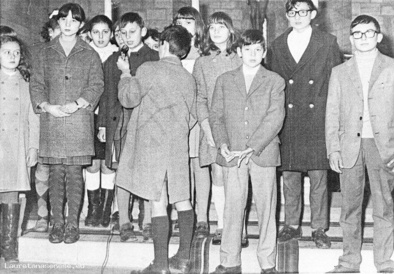 Dovrebbe trattarsi degli alunni della seconda B delle Medie, durante una recita effettuata per le vacanze di Natale