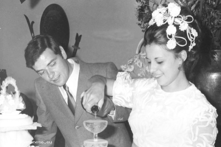 1969 - Gli sposi al termine del pranzo nuziale Asciano