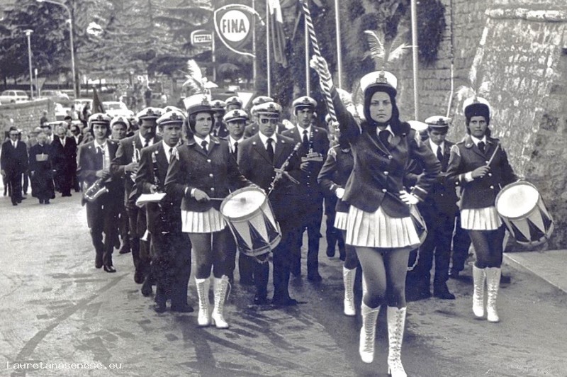 Questa bella immagine ritrae la Banda preceduta dalle sue belle Majorette al momento di varcare l'ingresso principale dello Stadio Marconi. Chi riconoscete?