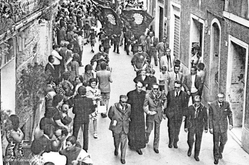 In testa al corteo della comparsa del Nicchio, tutti i dirigenti dell'allora Pro Loco , il cui presidente era il Veterinario Dott. Giulio Giulietti.
