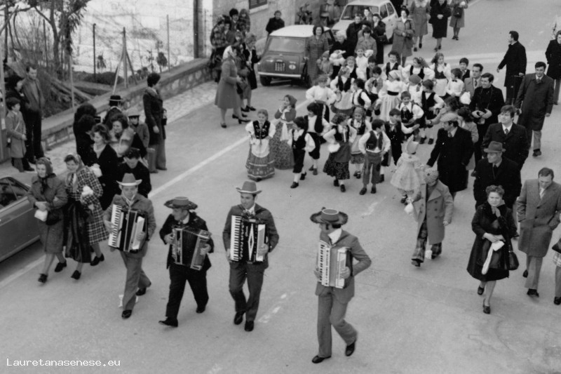 In fondo alla sfilata, un gruppo di fisarmonicisti fra i quali si rivonoscono. Marino Centini e Aldo Ugolini.