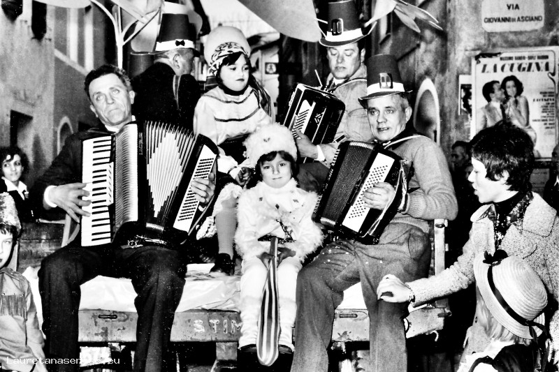 Bellissim foto dei migliori fisarmonicisti locali che contribuiscono a rallegrare i partecipanti alla sfilata dei carri.
