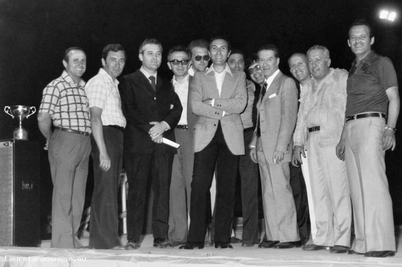 1975 - 8^ Mostra Mercato Ascianese: Pippo Baudo con i dirigenti della Pro Loco Asciano
