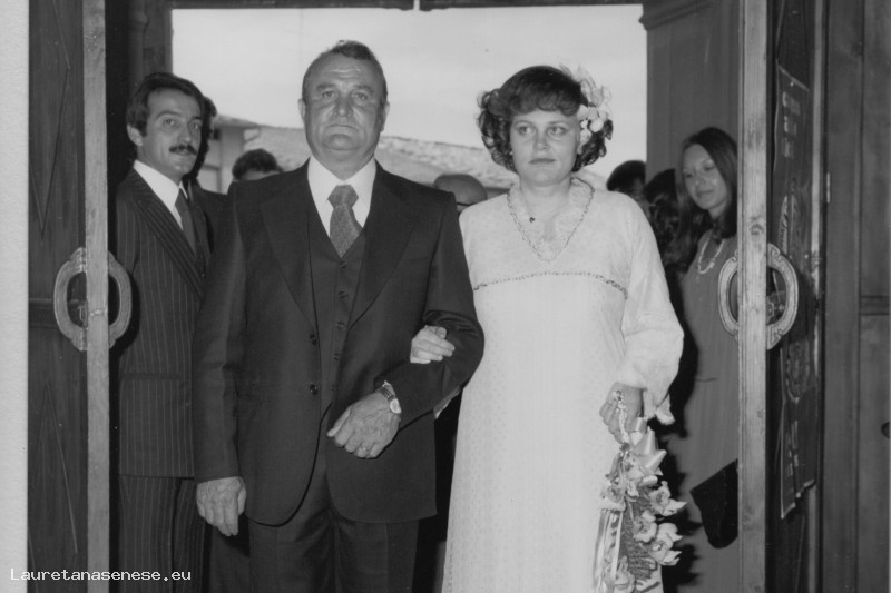 Un Sirio Papi, visibilmente emozionato, accompagna l'unica figlia: Marcella all'altare