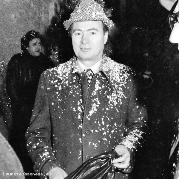 No non è un fotomontaggio, è proprio Giovanbattista Mancini che, partecipando al carnevale locale, ha ingaggiato una battaglia a suon di coriandoli con qualcuno.