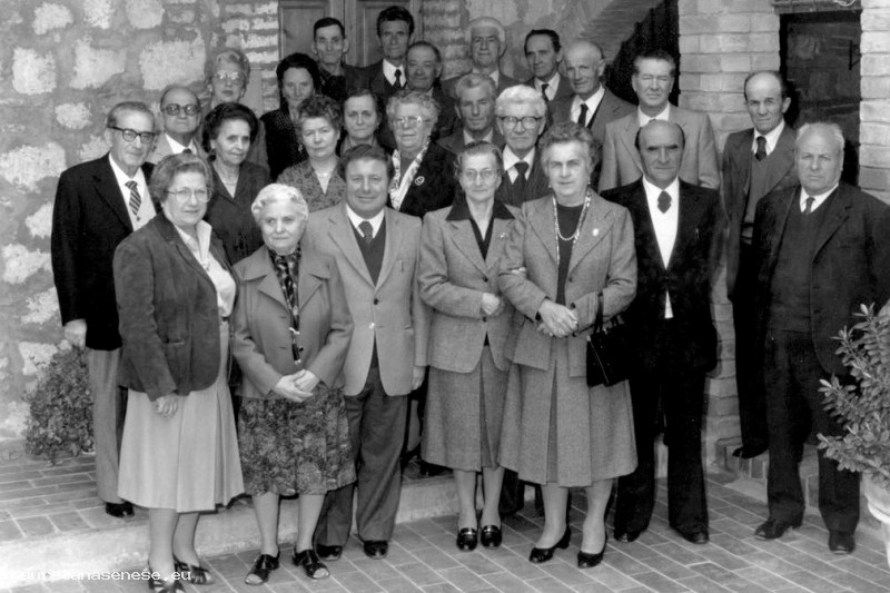 Un gruppo di ascianesi nati nel 1913 e i loro consorti, fatta eccezione per Mauro Fratagnoli figlio di Gesuina Vaselli. La foto dovrebbe essere stata fatta nei pressi del Ristorante di Ottorino alle Sante Marie.