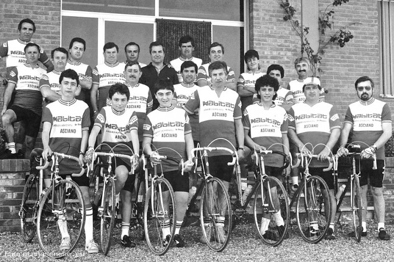Da sinistra: Sirio Caliani Fabrizio Agnelli Elvio Angelini Alessandro Palazzi Enrico Roncucci, lo sponsor Mario Bonari Silvano Fattori Renato Farfarini Luciano Magini Claudio Barbagli Gianni Farfarini Antonio Comanducci Massimo Foglietta Guido Rosini Francesco Bindi Andrea Ciacci Mario Giannettoni Antonio Roncucci Claudio Soldati Marcello Pianigiani