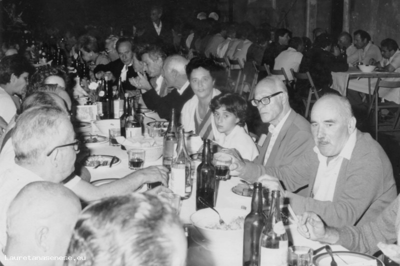 In questa inquadratura si notano: Silvio Tinagli in piedi che controlla l o svolgimento della cena, Ivonne Laschi, Enrico Torpigliani,Rando Laschi, la coppia dei Pagliantini livornesi con la nipote e Gennaro Scali, in primo piano.