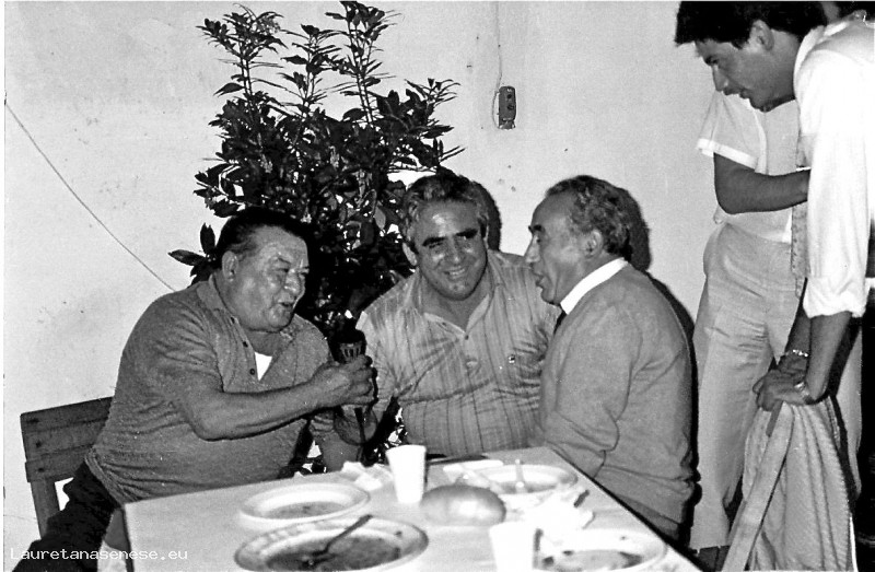Sergio Fagnani detto Bazzino con il microfono in mano, Giancarlo Giannetti detto Lallo, Romano Giustarini detto Romanino.