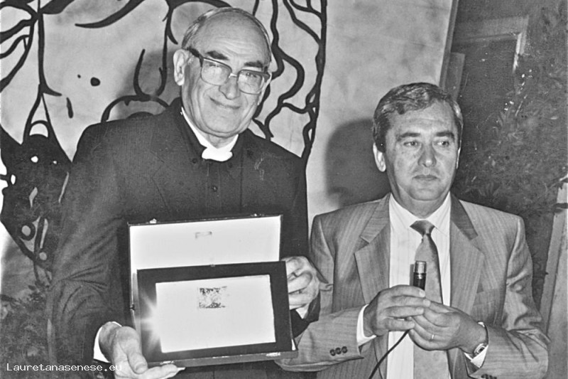1986 - Garbo d'Oro, don Sadotti mostra il suo premio Asciano
