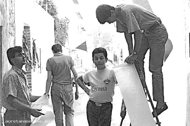 1988 - Addobbi con strisce di carta giallo-rosse Asciano