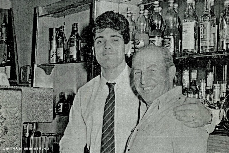 In questa foto è ritratto dietro il banco del bar del Cannelli, insieme a Marino Cresti, zio di Marcello Giannettoni.