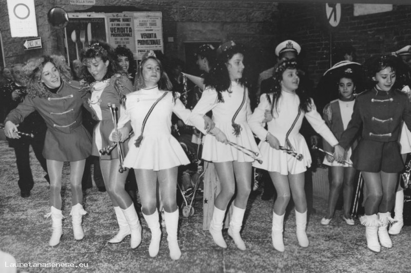 Al termine della giornata di carnevale in corso Matteotti, alcune majorette della Filarmonica locale improvvisano una fantasiosa esibizione.