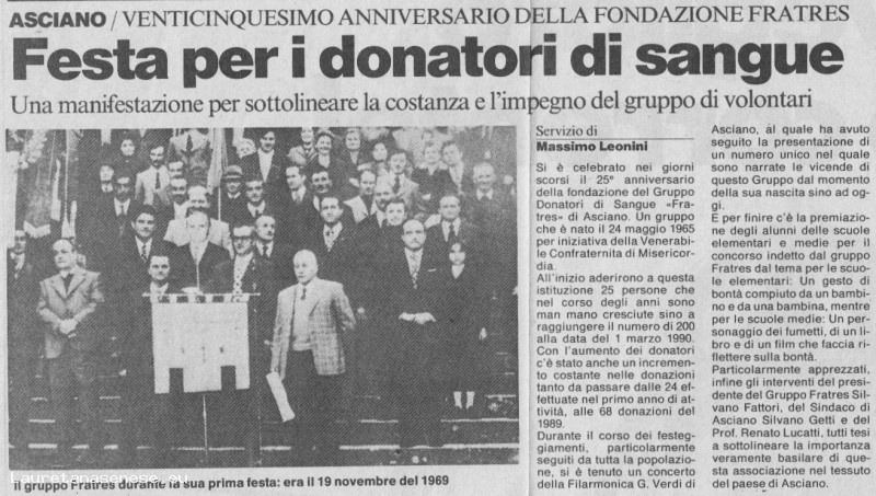 1990, 25 Maggio - Articolo sul 25° dei Donatori di Sangue Asciano