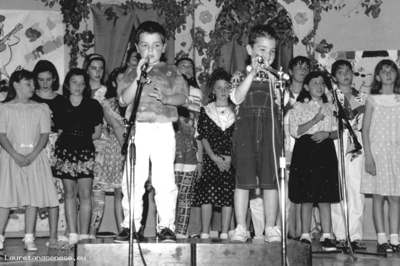 Sembrerebbe trattarsi della classica Festa della canzone dei bambini. L'immagine è però caratterizzata da un'esecuzione canora a due: