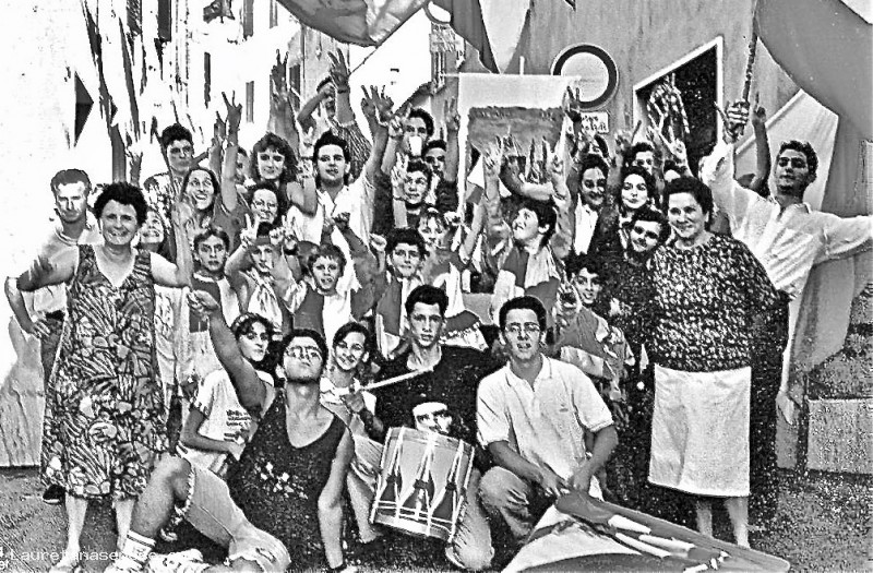1994 - Foto di gruppo con il Palio appena vinto Asciano