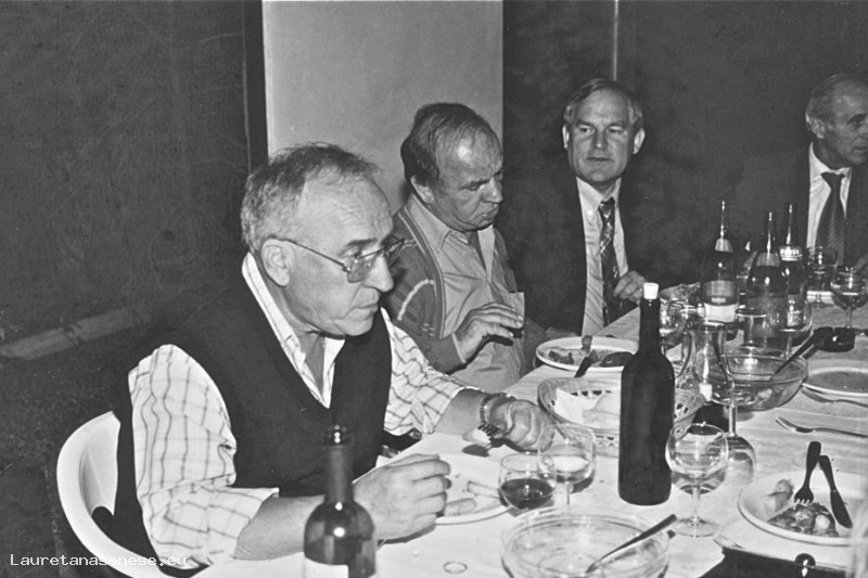 1997 - Cena dei Menciaioli, il Ciappe perplesso davanti a una salsiccia Asciano