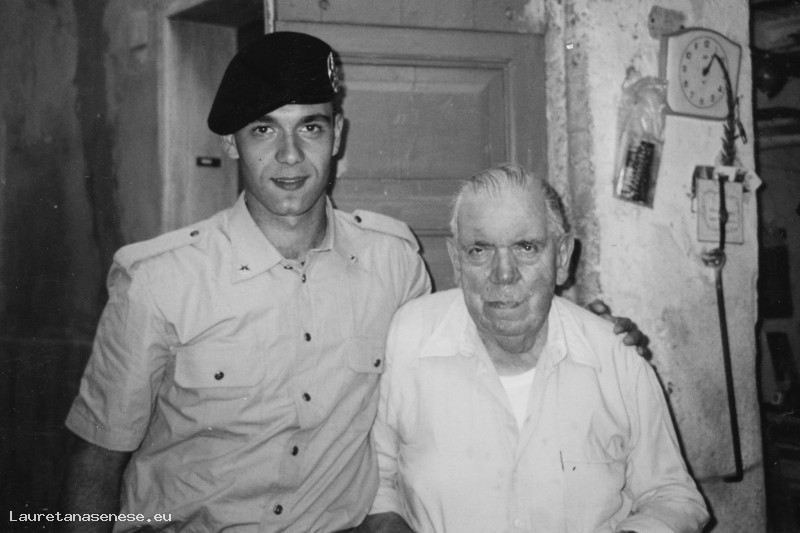 assieme al nonno Carlo, ormai piuttosto vecchio, ma felice di farsi fotografare con il nipote in divisa militare,