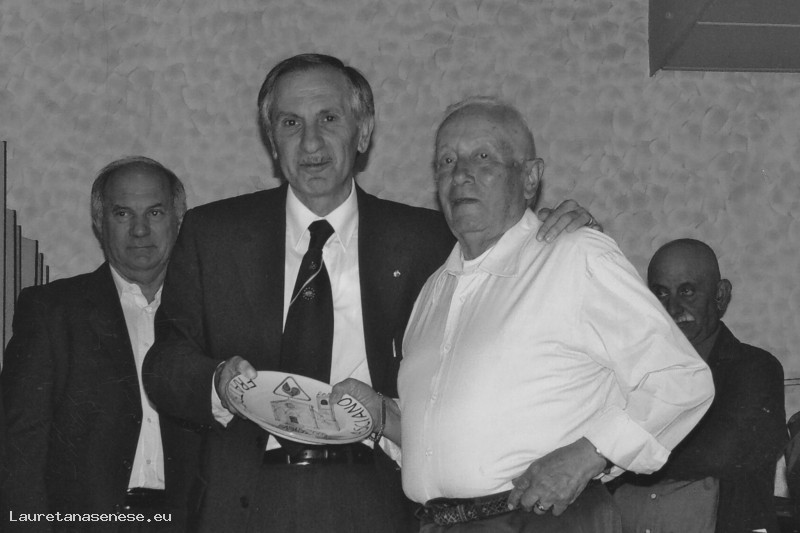 Marino Giannelli che, se non ricordiamo male ha svolto per un periodo il ruolo di Presidente dell'Associazione, riceve il piatto commemorativo da un dirigente nazionale del Gruppi Fratres.
