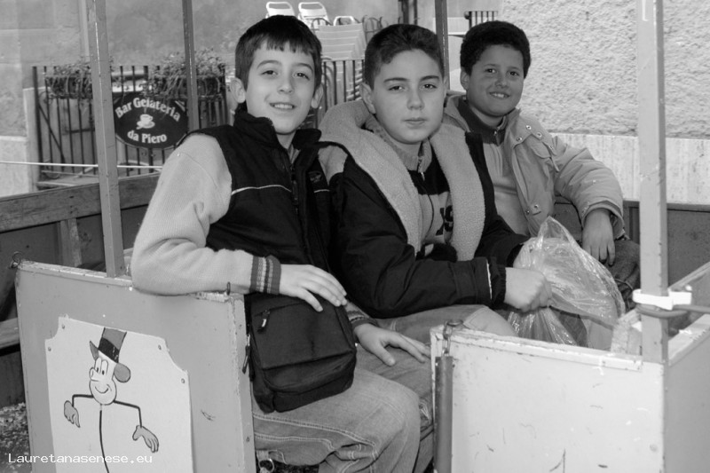 2006 - Tre ragazzi sul vecchio trenino di carnevale Asciano