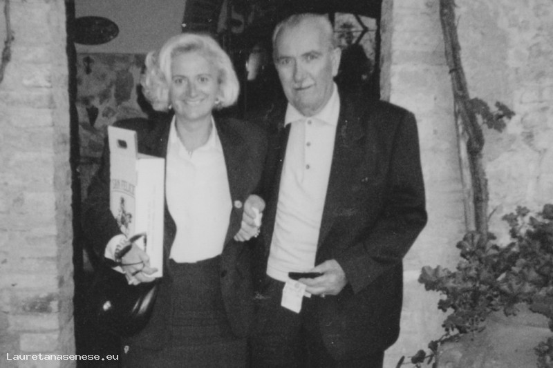 Grazia Fratagnoli con il babbo Renato all'uscita di un negozio di vini, presso una fattoria dei dintorni.