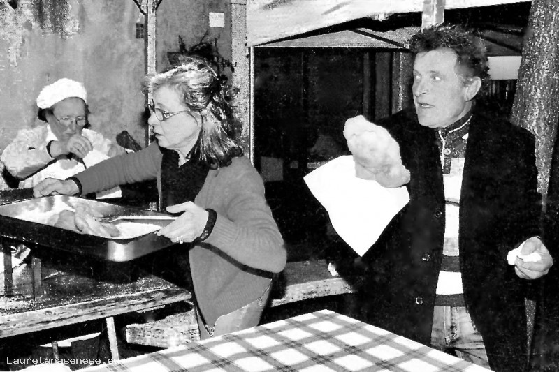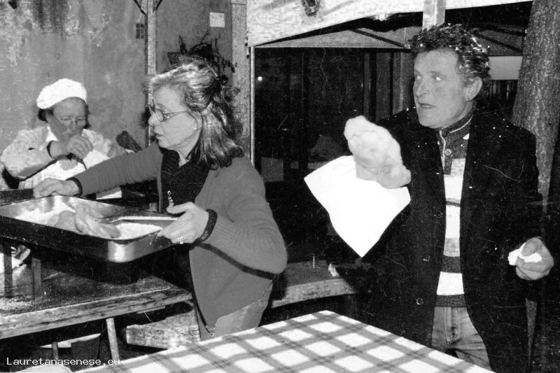 Pubblichiamo con piacere la foto di Franco Maraghini, recentemente scomparso, mentre si accinge a gustarsi una panella, accanto Angela Fei addetta al servizio, con la quale ha lavorato per molti anni alla Coop locale.