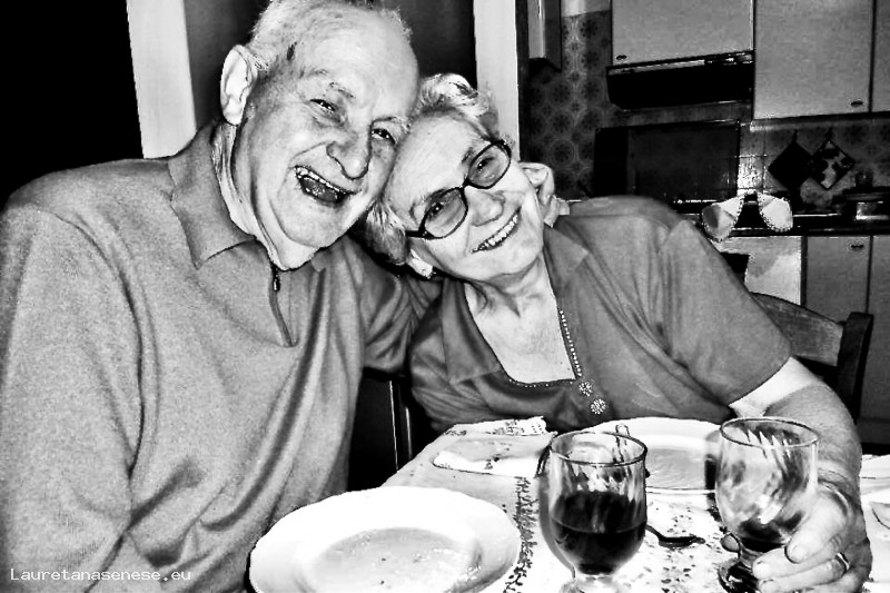 Mario e Graziella festeggiano in casa con grande e sincera allegria, nonostante la sorte non sia stata per loro benigna in fatto di salute.