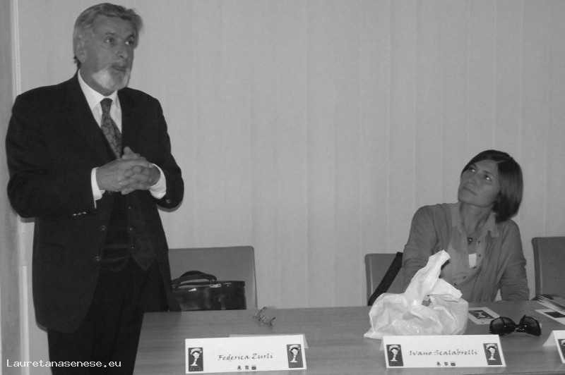 Il Presidentedell'Associazione che organizza a Chiusure la Festa del Carciofo, Ivano Scalabrelli, mentre interviene alla manifestazione.