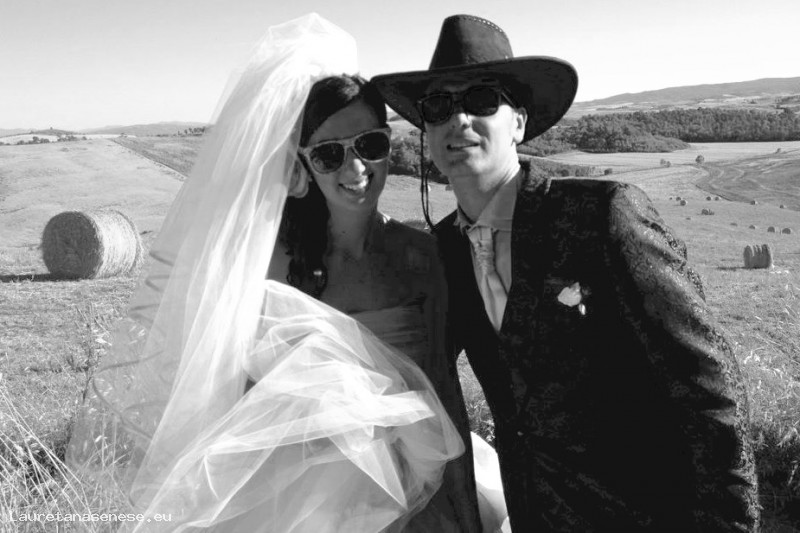 Gli sposi in mezzo alle Crete di Leonina, prima del pranzo di nozze: