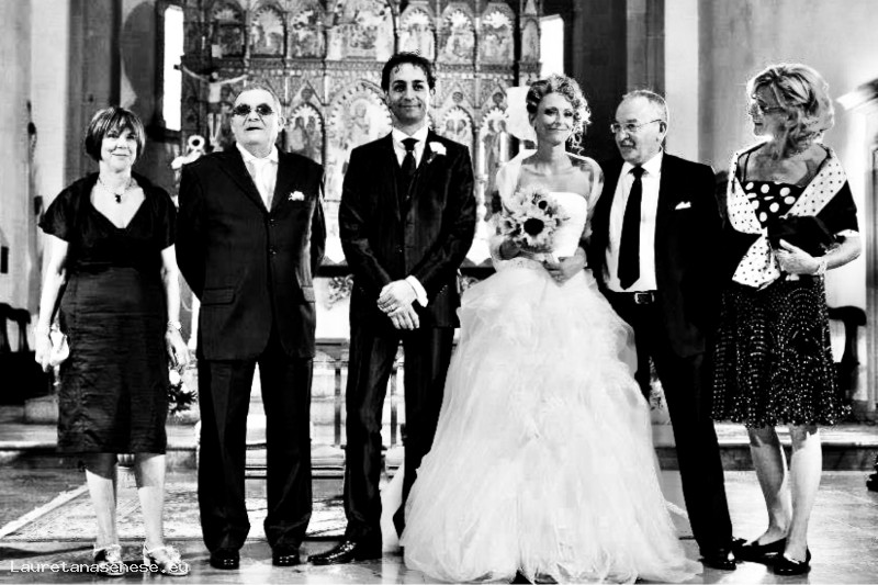 Mario Tozzi e la moglie Graziella partecipano,  insieme ai consuoceri, alla cerimonia religiosa del matrimonio della bella figlia.