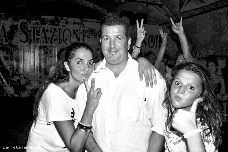 Bellissima foto di un padre: Paolo Neri, felice di essere affettuosamente circondato dalle sue belle figlie: Francesca ed Elena.