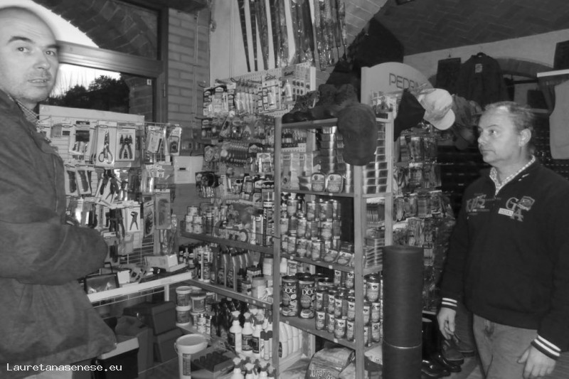Fabio Gallorini, titolare del più noto e quotato ristorante di Asciano, sorpreso a fare acquisti nel negozio di Lia Burroni ad asciano scalo.
