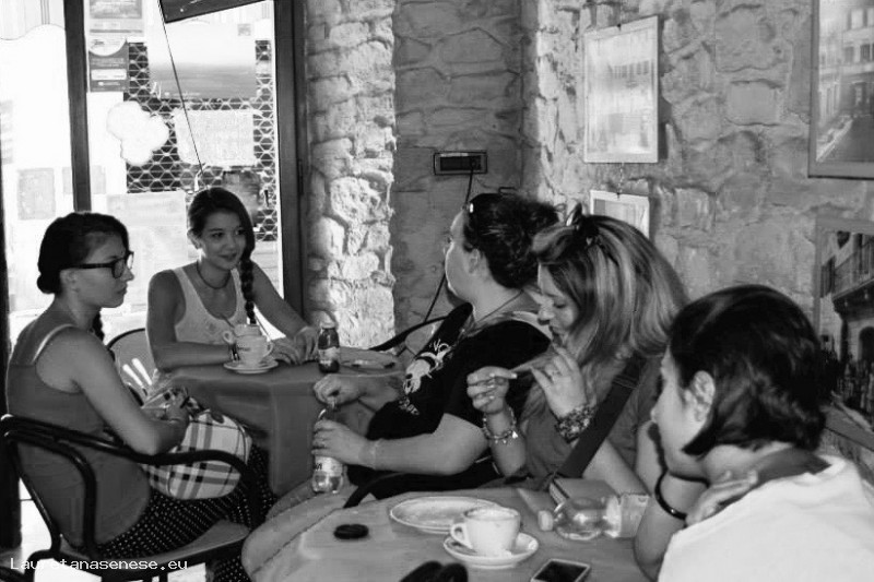 Gruppo di ragazze locali che hanno cercato un momento di refrigerio all'interno del Bar Hervè, un mattino estivo pieno di sole.