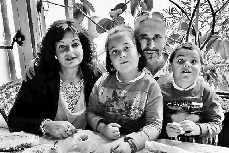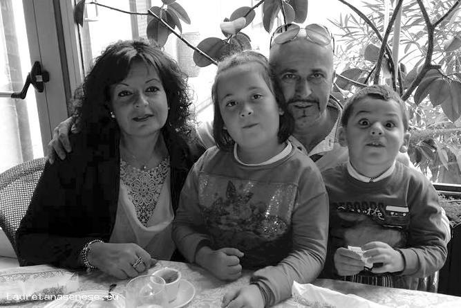 Barbara Finetti con il marito Graziano Santini e i due figli Adele la più grande e ? il piccolo.