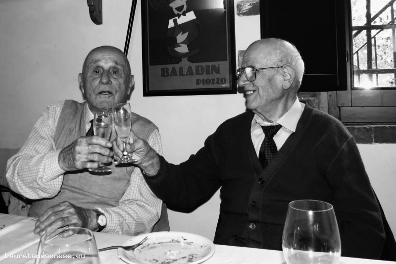 Due grandi amici che si ritrovano ogni anno ad Asciano per l'assemblea con pranzo sociale della COOP TRANQUILLA: