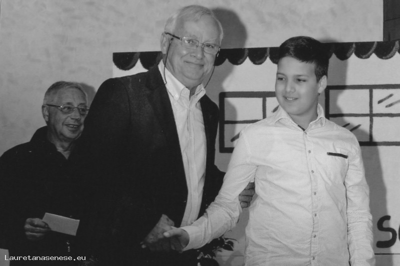 Vincenzo Cassioli, il Presidente del gruppo Donatori mentre premia uno degli studenti meritevoli.