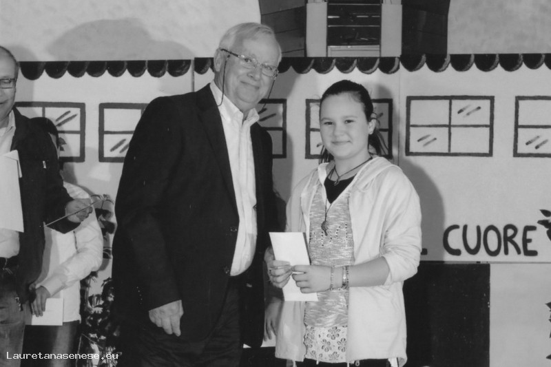 Il Presidente Vincenzo Cassioli premia Giada, un'alunna delle Scuole Medie locali.