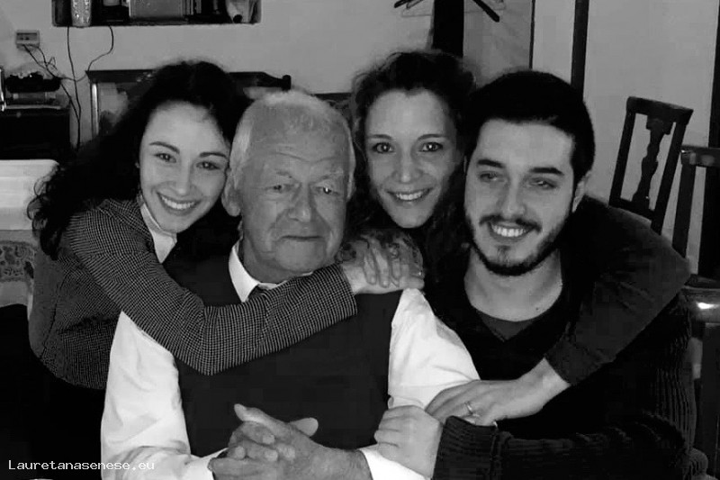 Fosco Marconi in divisa da componente della Filrmonica locale, attorniato affettuosamente dagli amati nipoti: