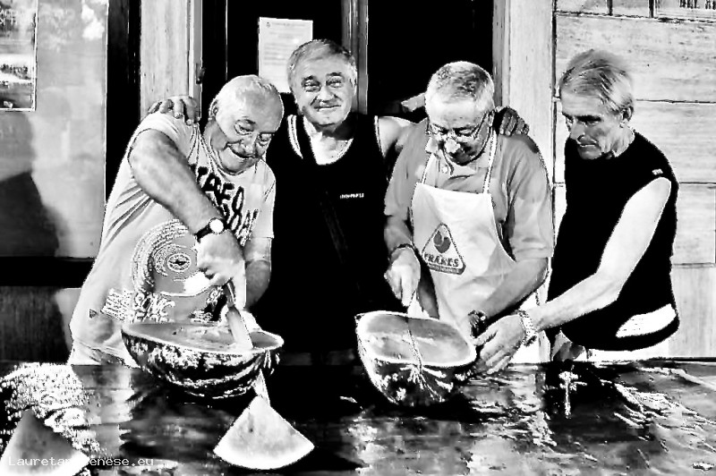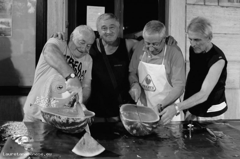 Quattro carissimi amici impegnati a tagliare cocomeri, durante uno dei famosi Mercoledì di Asciano.