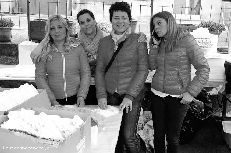 Un gruppo di donne della Proloco di Asciano, in posa poco prima dell'apertura dello Stand di distribuzione Carciofi Fritti alla Festa di Chiusure: